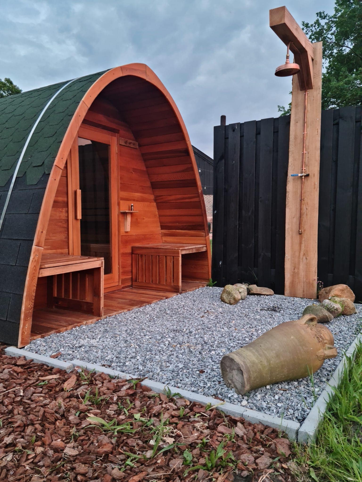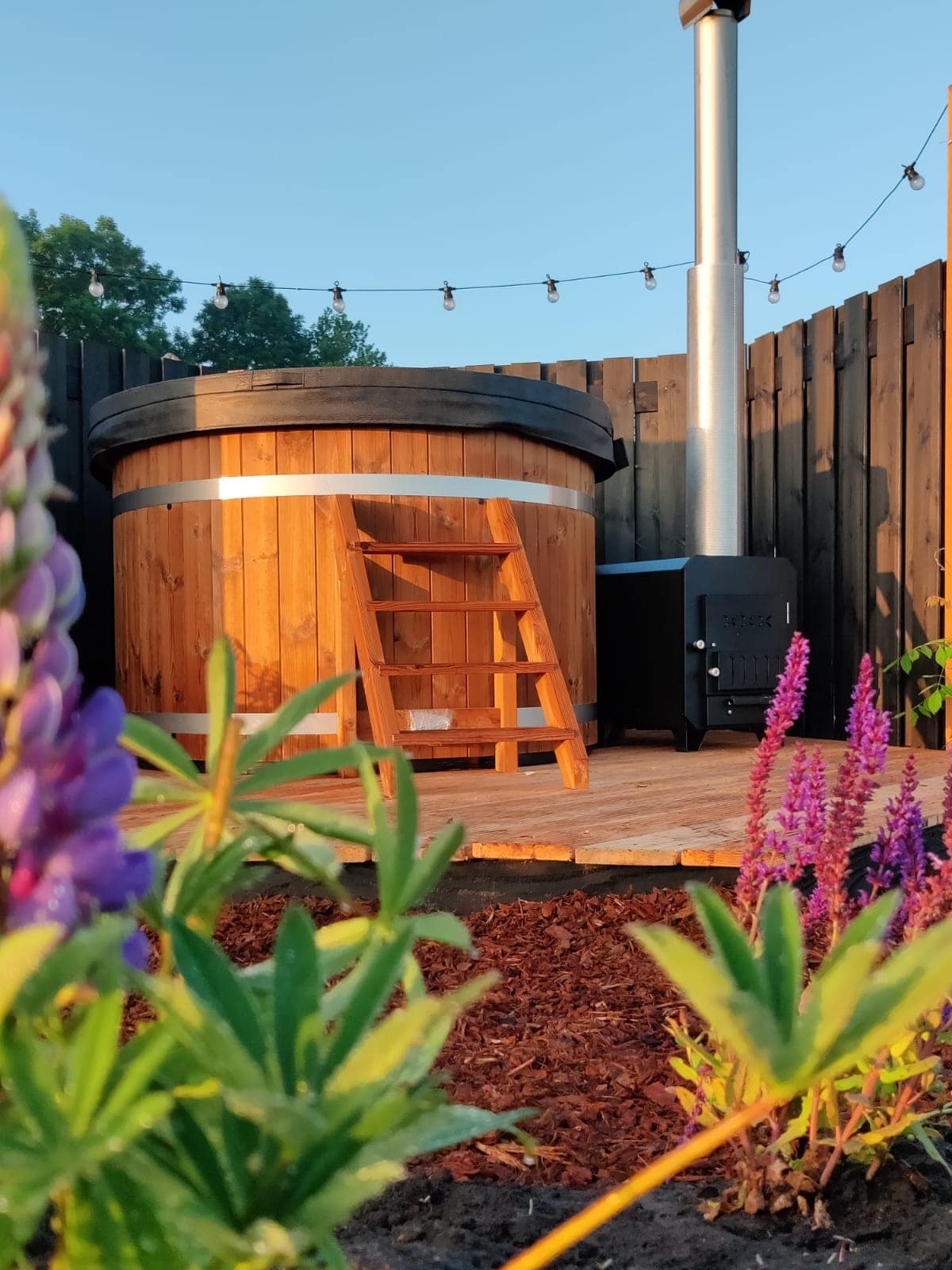 De hottub is speciaal voor jou op temperatuur gebracht voor jouw aankomst. Daarna mag je zelf het vuur bijhouden – hout, aanmaakblokjes en uitleg zijn inbegrepen. Alles ligt klaar, zodat jij alleen maar hoeft te ontspannen.