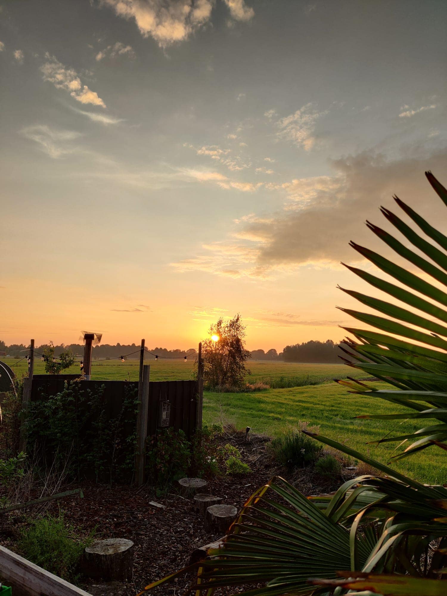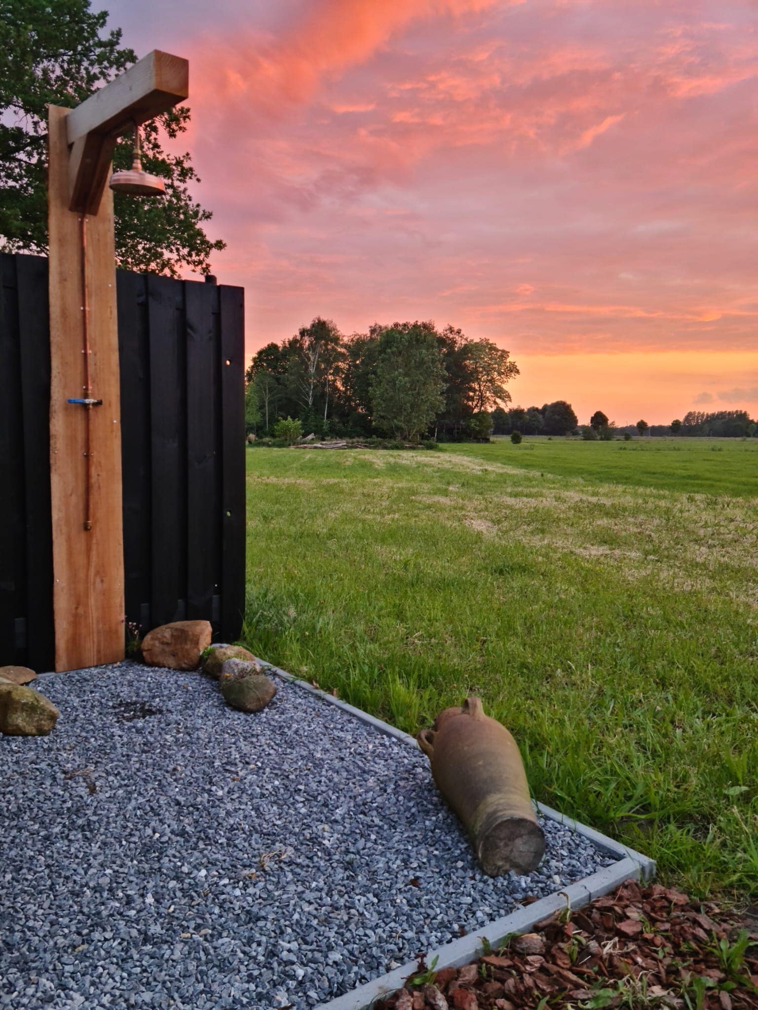U zit midden in de natuur en kijkt naar de ondergaande zon. Een fantastische beleving voor onze B&B gasten.