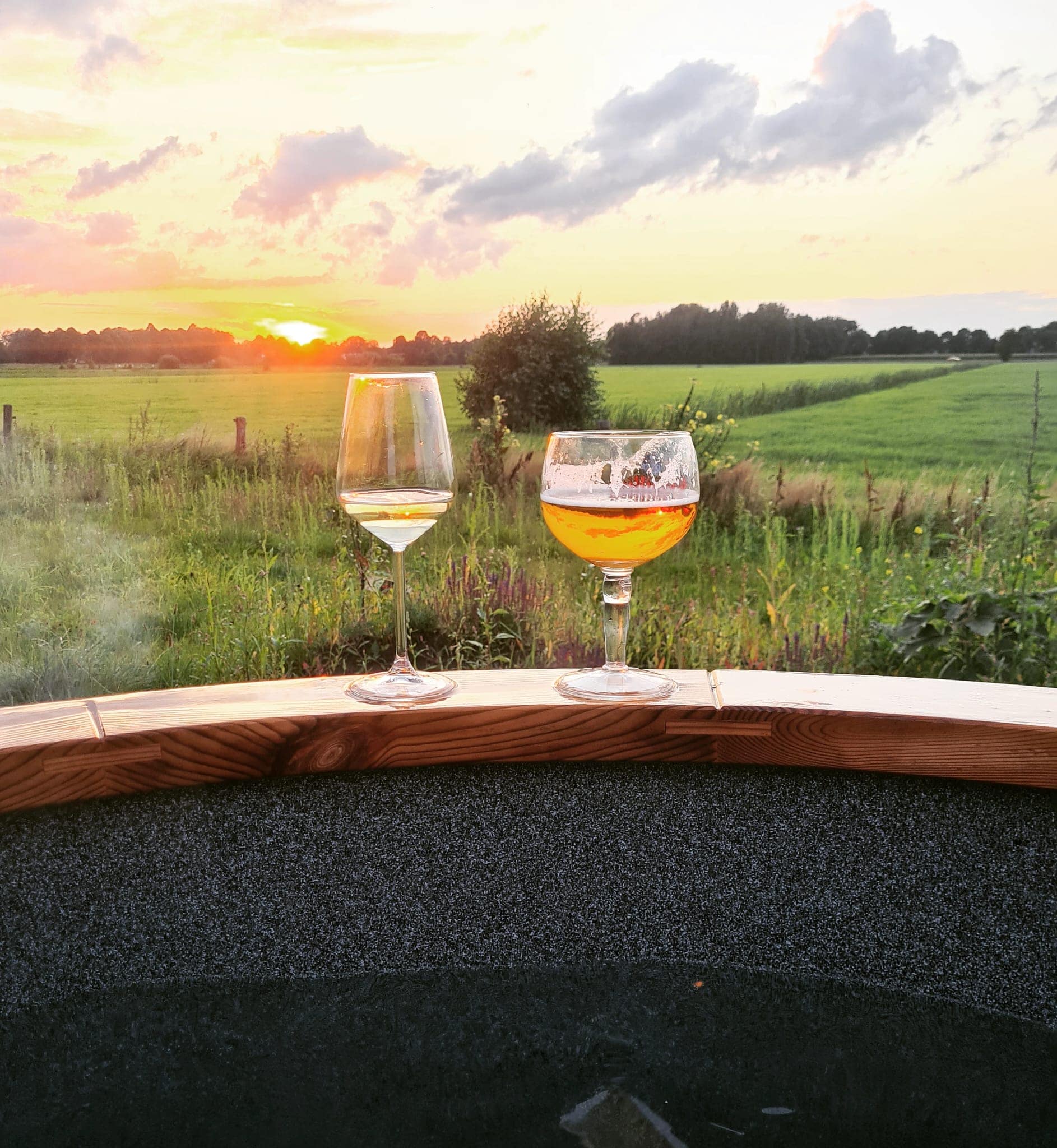 Boekt u het “Hottub arrangement”, dan krijgt u een flesje wijn erbij!